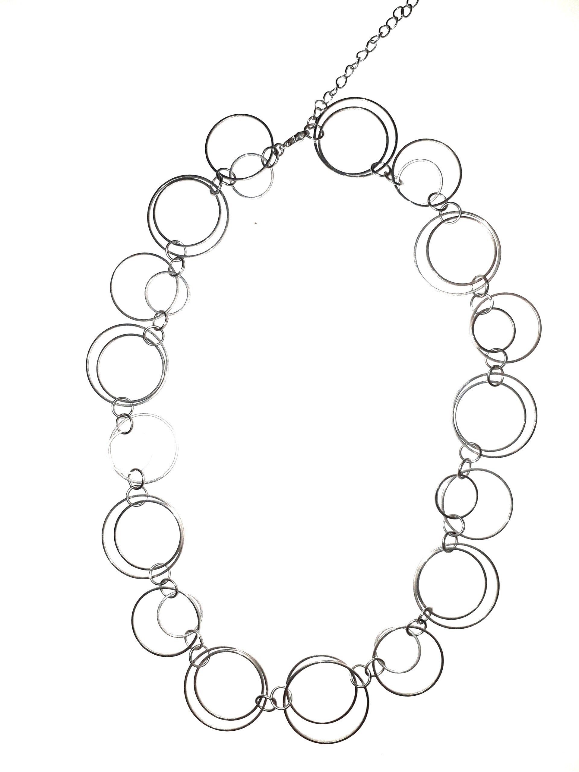 Zilverkleurige ketting van grote ringen.