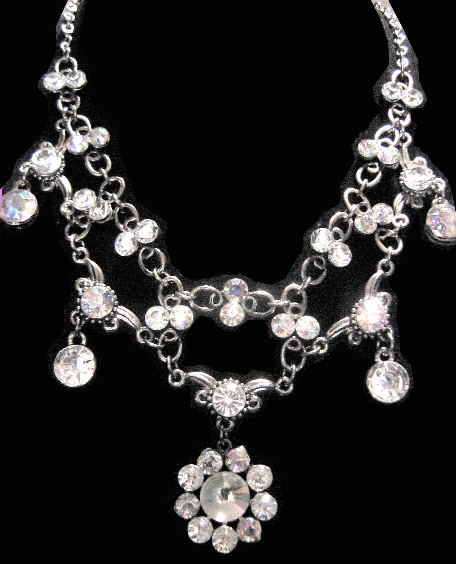 [8046] Zilverkleurige ketting met heldere strass-steentjes